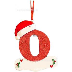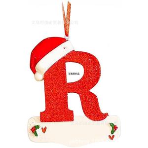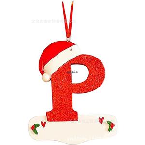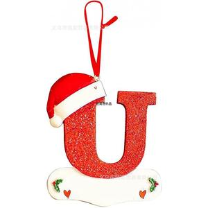 圣诞首字母带红帽字母装饰,DIY 圣诞树悬挂装饰个性化吊坠礼品