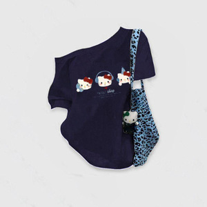 韓国グレーワンショルダーキティ猫プリント斜め肩半袖Tシャツレディース夏新作人気ハイエンドトップ