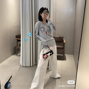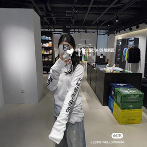 25早秋新款美式潮牌花臂梵文印花华夫格长袖上衣女款