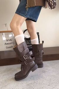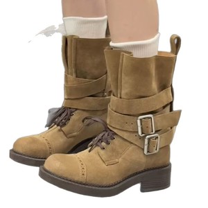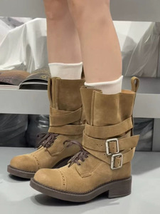 复古英伦风马丁靴女2025早秋新款粗跟皮带扣短靴机车靴百搭骑士靴