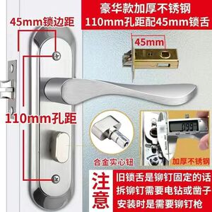 卫生间门锁无钥匙铝合金厕所洗手间门不锈钢通用型家用浴室执手锁