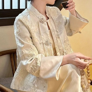 大码胖新中式国风唐装女轻奢高级感盘扣外套缎面裙两件套200斤