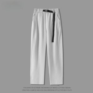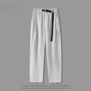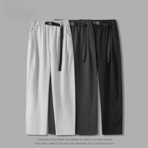 ヘビーウェイトスウェットパンツ、ストレートレッグ、ドレープカジュアルパンツ、メンズトレンディブランド、ハイエンド、調節可能なベルト付き、多用途のルーズパンツ