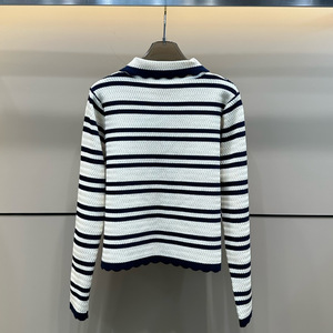 25早秋新款减龄百搭经典条纹拉链开衫?半裙两件套套装
