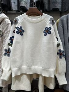 2025秋冬新款洋气时尚重工刺绣优质毛衣女百搭减龄显瘦韩系针织衫