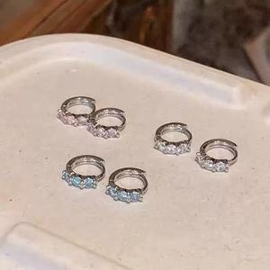 女性用の3ペアのツインイヤーピアス、カラフルなジルコンイヤリング、2025年の新しいスタイル、絶妙なプレーンイヤリング、ニッチで多用途なイヤリング