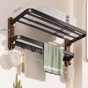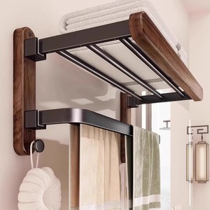 【黑胡桃木】旗舰款 折叠浴巾架带排钩50CM