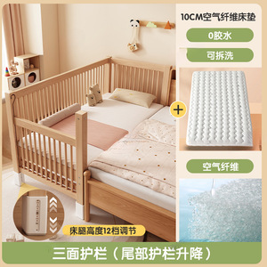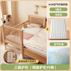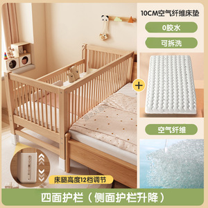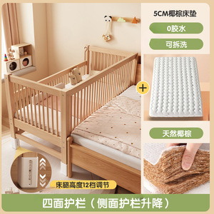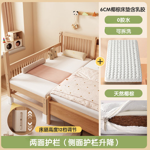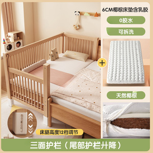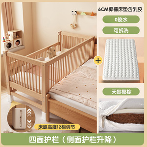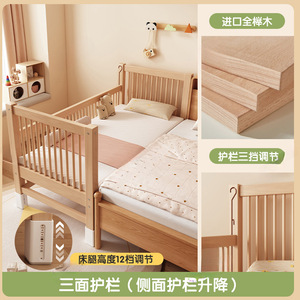 榉木拼接床实木儿童床加宽小床拼接大床升降护栏男女孩宝宝婴儿床