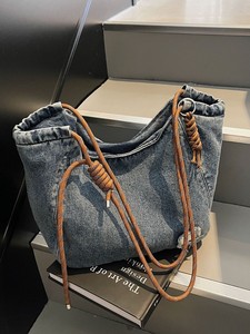 牛仔布包包女2025跨境新款流行时尚单肩斜挎大容量学生通勤托特包