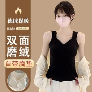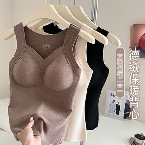 厂家直销跨境爆款秋冬德绒双面磨毛保暖背心女士带胸垫加厚打底衫