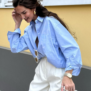 2025秋の新作女性用ゆったり万能ストライプ長袖シャツ、デザイン、気質、ファッション、カジュアル、クロスボーダー通勤