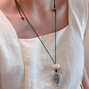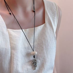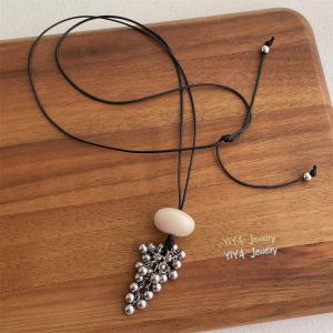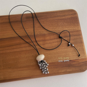 日本と韓国の引き出し可能な黒いロープブドウの串ボールロングネックレス女性用樹脂シンプルで多用途なセーターチェーンファッションネックレス