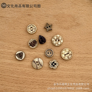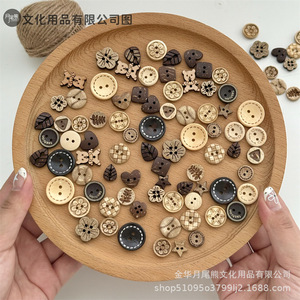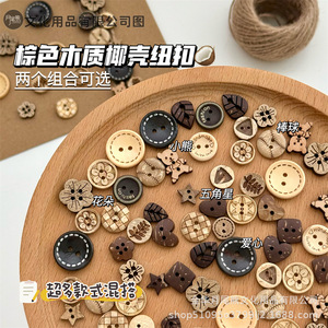 高颜值棕色异形木质椰壳有孔纽扣装饰配件diy手账串珠链平价混搭