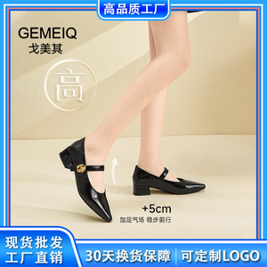 Gomeqi メリージェーンシューズ女性のための 2025 秋の新レトロポインテッドトゥストラップ浅い口の靴気質ハイヒール