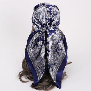 跨境90*90CM方巾仿真丝巾女士头巾围巾CO撞色披肩条纹简约欧美款