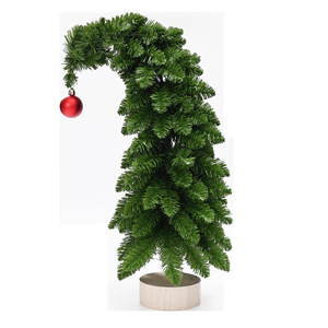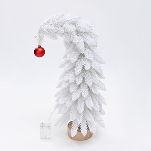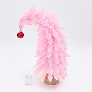 跨境亚马逊歪脖子圣诞树摆件小型桌面装饰树PE迷你可带灯小圣诞树
