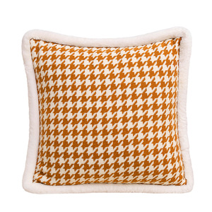 现代奶油风橙色千鸟格沙发靠垫异形太阳花针织坐垫民宿飘窗蒲团垫