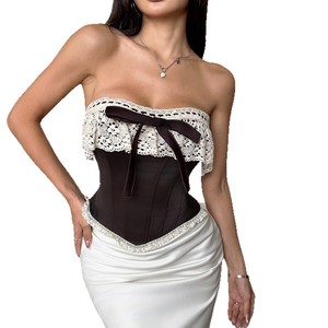 クロスボーダーヨーロッパとアメリカのレトロなスタイルのレースフィッシュボーンウエストバッククロスストラップニッチデザインチューブトップ 11910