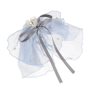 冰蓝色~珍珠飘带马尾夹