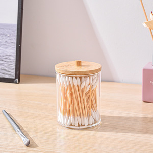 綿棒ボックス竹蓋透明プラスチック収納瓶デンタルフロスつまようじ防塵綿棒綿球綿棒美容ツールボックス