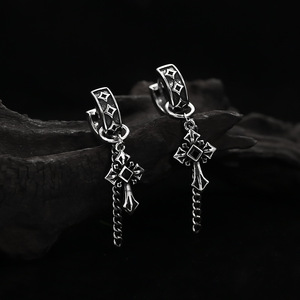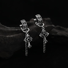 暗黑系复古做旧十字架流苏百搭高级感轻奢冷淡风小众设计耳环女