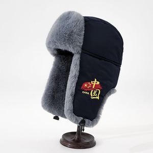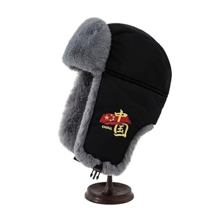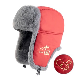 冬季中国红刺绣雷锋帽男加绒加厚保暖套头帽东北防寒骑车护耳棉帽