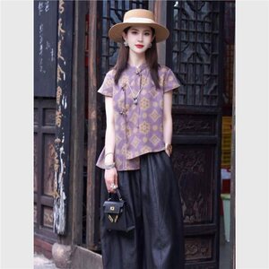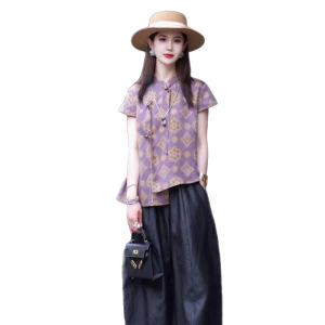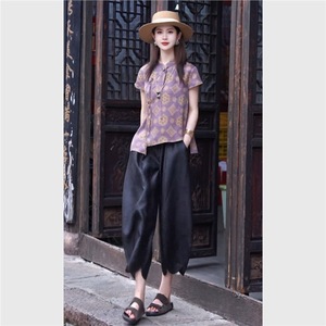 深圳南油新中式国风女装短袖上衣灯笼裤套装2025新款减龄别致穿搭