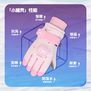 儿童滑雪手套加厚保暖户外骑行防风防水五指手套创意卡通手套耐磨