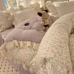 クラスA二重糸韓国風ガーリーハートベッド4点セットプリンセス風レースキルトカバーシーツベッドスカート寝具4