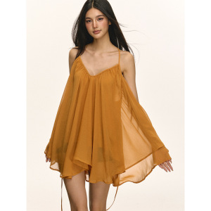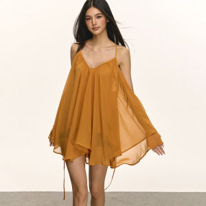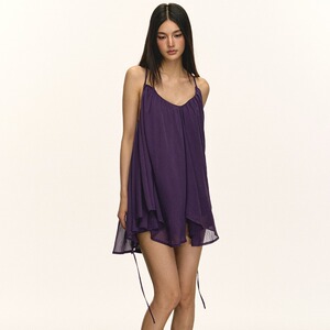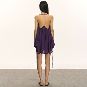 雪纺吊带连衣裙女夏季辣妹紫色短款露背无袖背心裙子潮