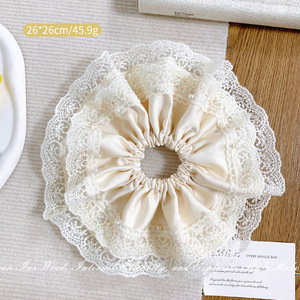 夏季新品轻奢大气款蕾丝大肠发圈女超大号百搭高级感珍珠发饰头绳