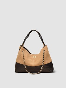 2025新款夏季羊皮配磨砂皮菱形格子纹水桶包手提链条包单肩手提包
