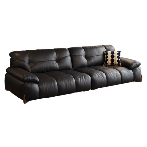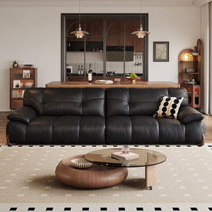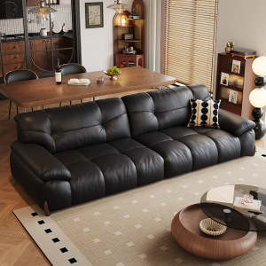 艾沃适 复古黑色真皮沙发头层牛皮云朵可充电带支架宽大坐深梳化