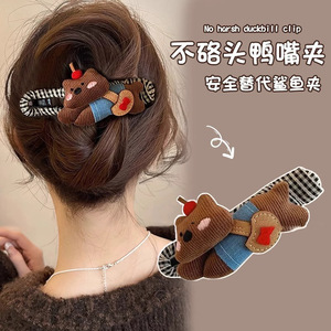鲨鱼夹安全替代品蝴蝶撞色鸭嘴夹发夹女后脑勺盘发一字夹抓夹发饰