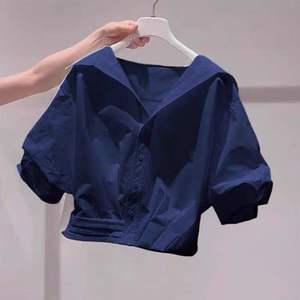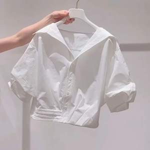 法式白色翻领泡泡袖衬衫女夏季2025新款甜美减龄慵懒风短款上衣潮