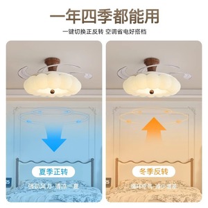 法式中古风卧室风扇灯新中式胡桃木色泡泡吊扇灯餐厅一体电风扇灯