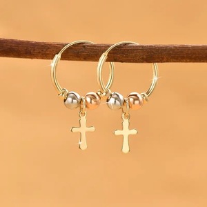 惠漾亚马逊跨境十字架吊坠耳环双色串珠耳圈男女同款复古饰品批发