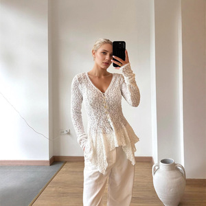 2025秋人気のヨーロッパとアメリカのレースカーディガンブレストシャツレディーススリム長袖ファッショナブルで多用途な気質トップ