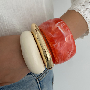 ヨーロッパとアメリカのクロスボーダージュエリー、クリエイティブなデザイン、カラフルなブルーミングワイドブレスレット、レトロな気質の金属光沢のあるブレスレット