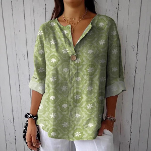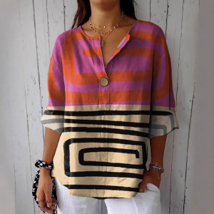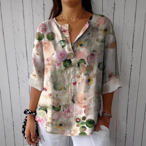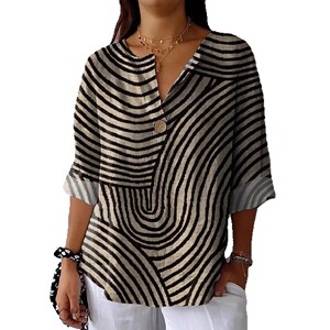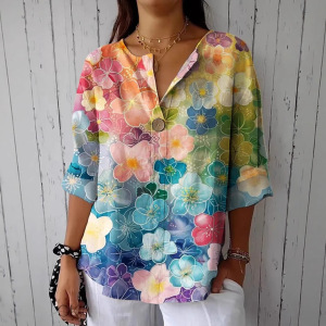 ヨーロッパとアメリカのクロスボーダー 3 Amazon 独立したステーション夏の新しい 3D プリントレディースファッション V ネック長袖シャツトップ