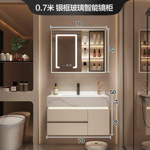 【クリーム色】-高級多機能収納ラック スマートミラーキャビネット-70CM-[スレートセラミックシームレス洗面器]