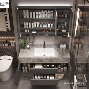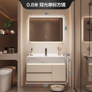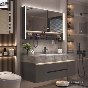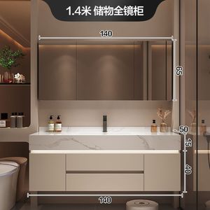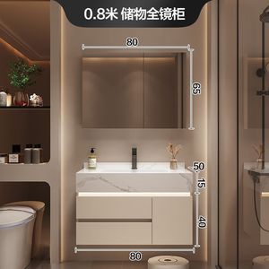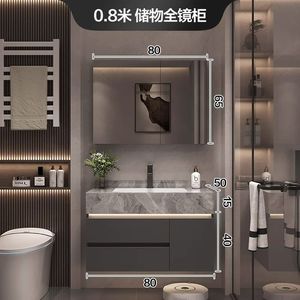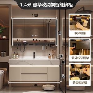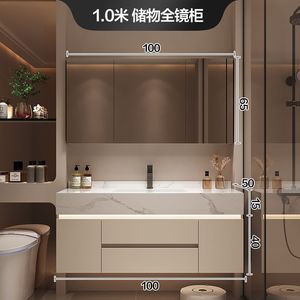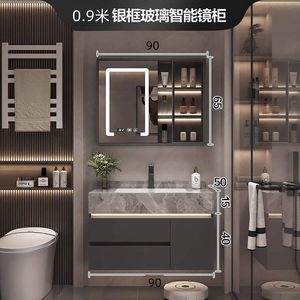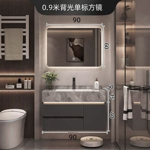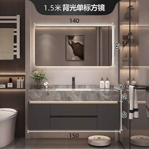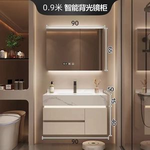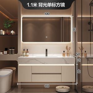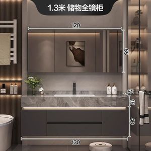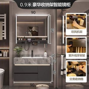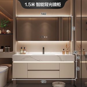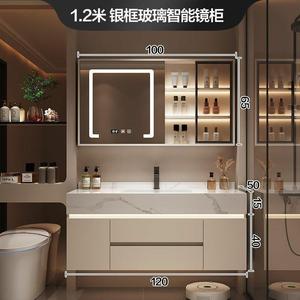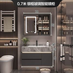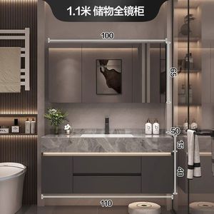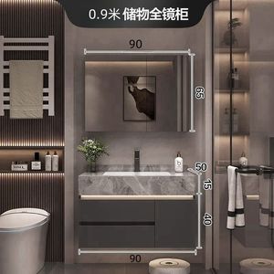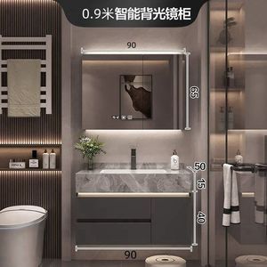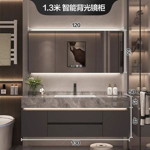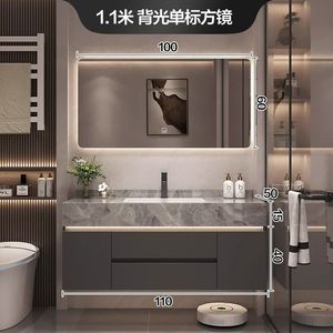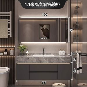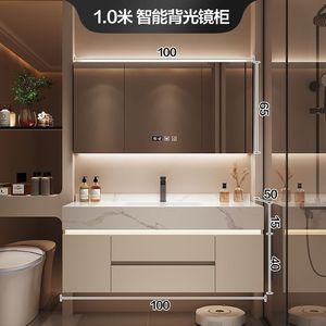 新しいバスルームキャビネットロックスレートシームレスセラミック洗面器ライト高級バスルーム多機能洗面台キャビネット組み合わせバスルームシンプル