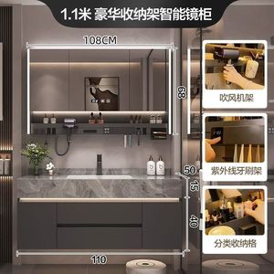 [アイアングレー] - 高級多機能収納ラック スマートミラーキャビネット - 110CM - [スレートセラミックシームレス洗面器]