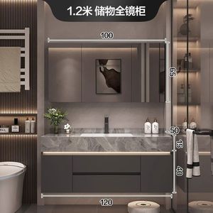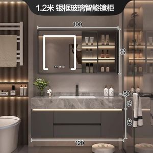 [アイアングレー] - 高級多機能収納ラック スマートミラーキャビネット - 120CM - [スレートセラミックシームレス洗面器]