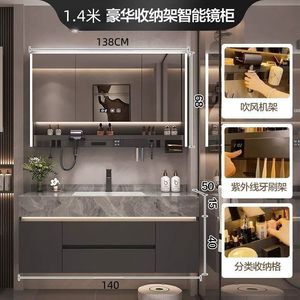 [アイアングレー] - 高級多機能収納ラック スマートミラーキャビネット - 140CM - [スレートセラミックシームレス洗面器]