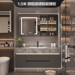[アイアングレー] - 高級多機能収納ラック スマートミラーキャビネット - 100CM - [スレートセラミックシームレス洗面器]