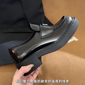 P家同款~女鞋经典百搭厚底粗跟真皮三角标乐福鞋女士学生小皮鞋子