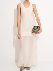 深圳南油女士无袖宽松纯色休闲连衣裙25夏季新款简约设计度假长裙