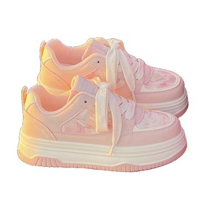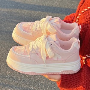 女性用の見栄えの良いピンクのパンシューズ、ワイドレッグパンツスニーカー、トレンディな2025春の新作、多用途の厚底スポーツとレジャー