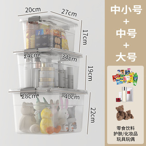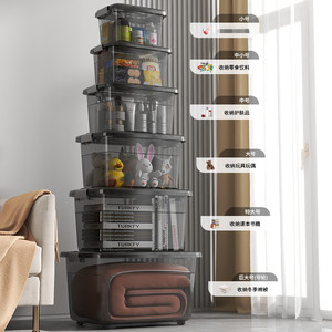 透明收纳箱带盖装衣服储物箱子家用零食盒玩具杂物车载后备整万百